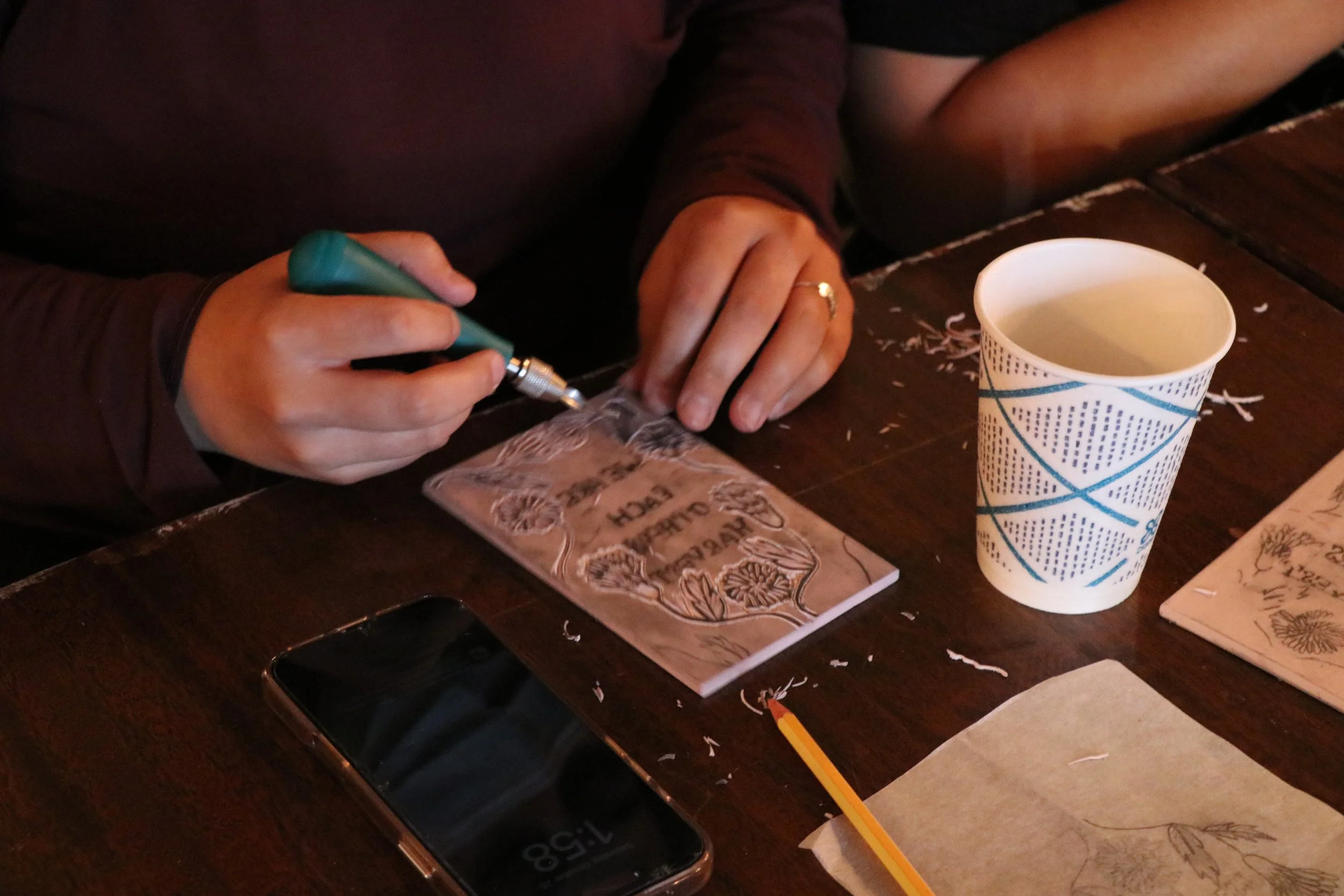 Grounded in the traditions of printmaking, participants are encouraged to reflect on memories of home/homeland and the nostalgic moments or objects that keep our cultures alive. Together we build spaces of collective art-making, communal healing, and cultural preservation!