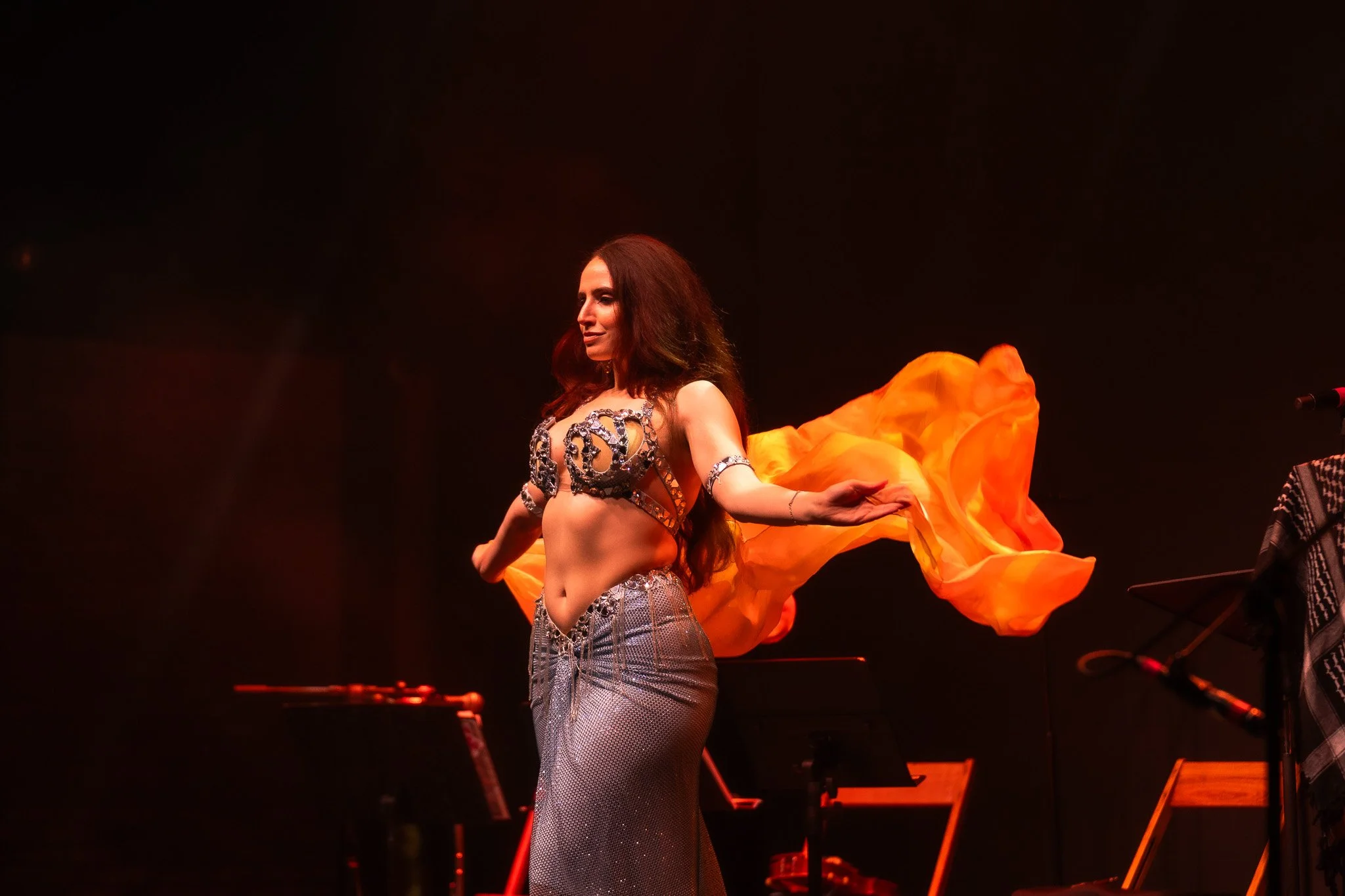 Coming from a background in instrumental and vocal music and musical theatre, Phaedra Darwish was mesmerized by Arabic dance and music after studying different types of dance from around the world. She feels that these art forms are beautiful ways to share the culture of her heritage.