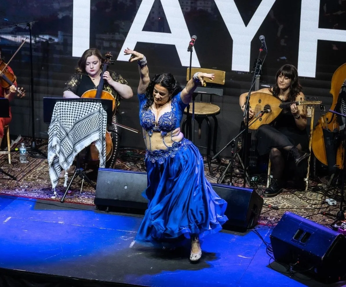 TAYF طَيْف , captured in English, can mean spectrum, diversity or vision. The ensemble widens the aperture on traditional maqam to center queer, non-binary and women performers, too often on the periphery of the tradition. From its inception in early 2024, the ensemble has performed across Chicago – keeping inclusion and activism at its core. From its debut at a sold-out Old Town School of Folk Music auditorium, to headlining the Fields of Palestine: A Benefit for Gaza, TAYF طَيْف has cemented itself in Chicago’s music scene as a pillar of innovation and community.